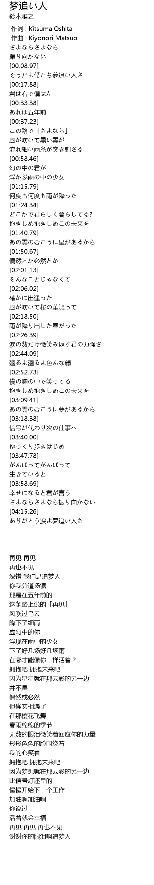 | [00:09.73] | そうだよ僕たち夢追い人さ |