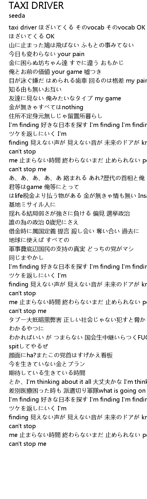 | taxi driver ほざいてくる そのvocab そのvocab OK taxi driver ほざいてくる OK | |