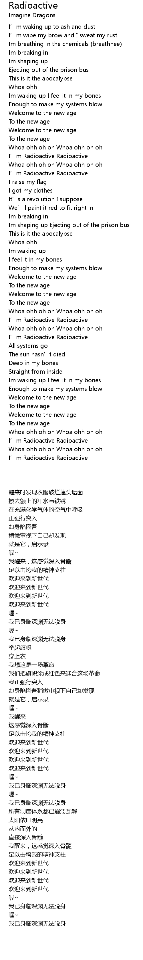 | [02:53.220] | I' m Radioactive Radioactive |