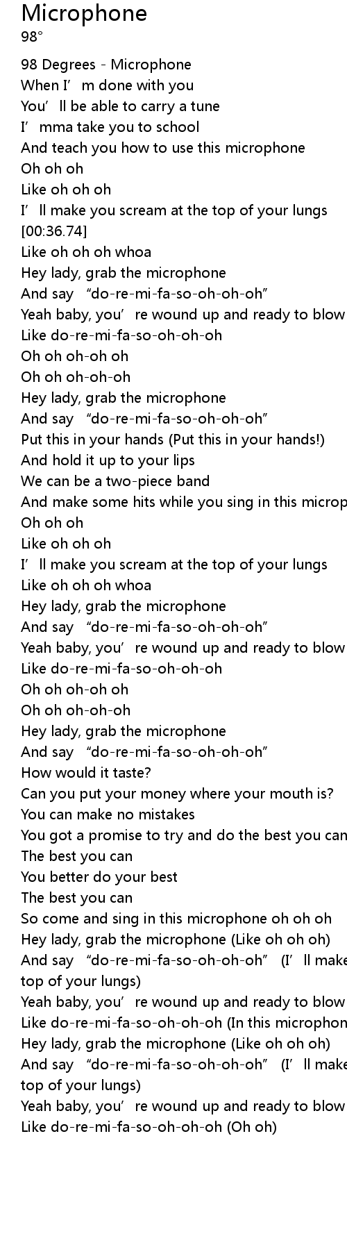 | [00:00.74] | 98 Degrees - Microphone |