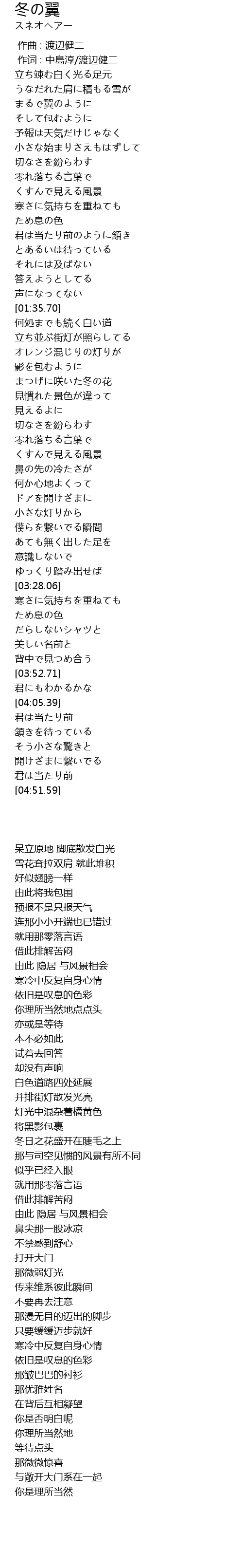 | [03:39.04] | 寒さに気持ちを重ねても |