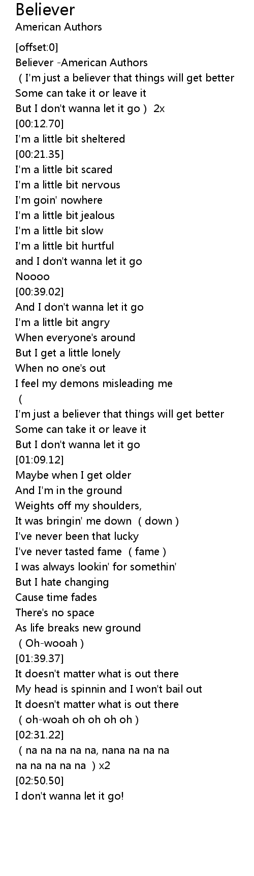 | [00:00.83] | Believer American Authors |