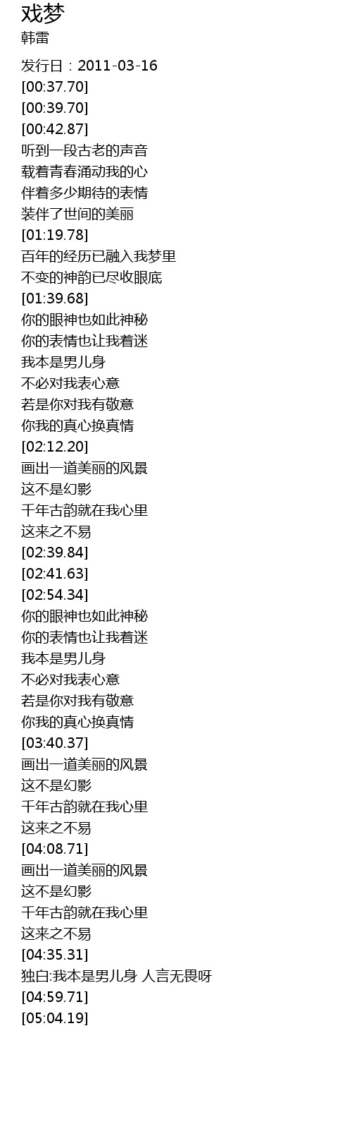 | [04:39.77] | 独白:我本是男儿身 人言无畏呀 |
