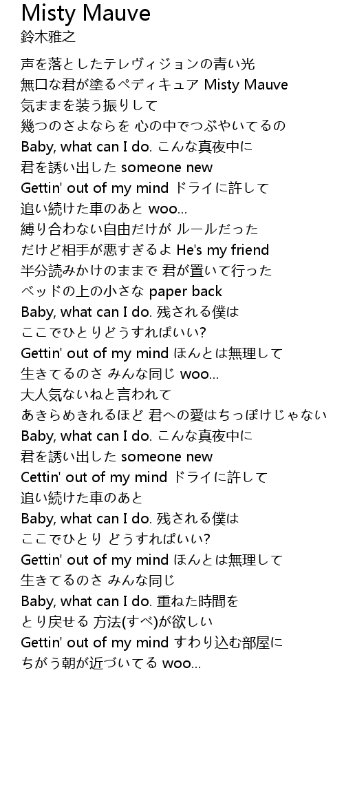 | Gettin' out of my mind ドライに許して | |
