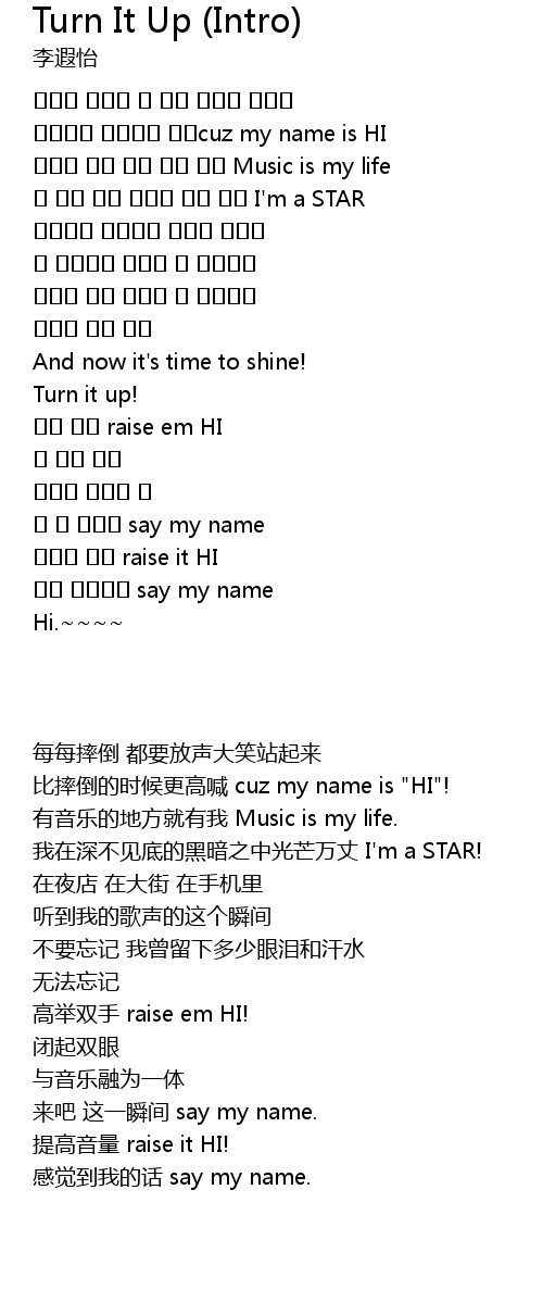 | [01:19.93] | 볼륨을 위로 raise it HI |