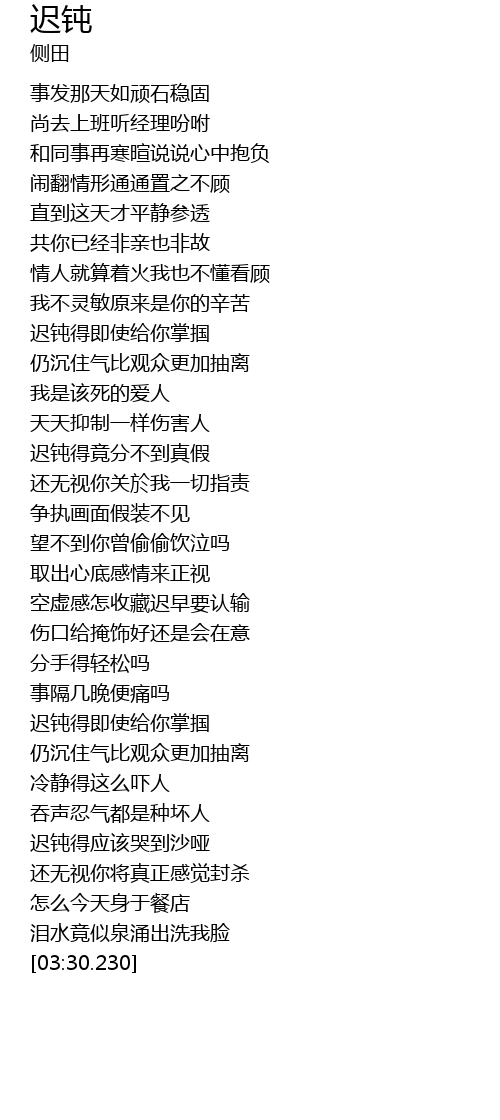 | [02:57.190] | 迟钝得应该哭到沙哑 |