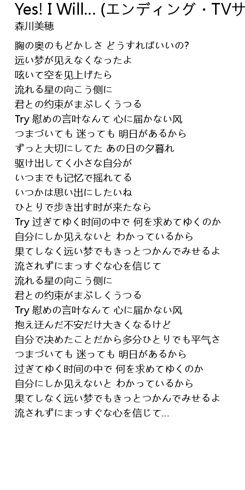 | Song | Yes! I Will… (エンディング・TVサイズ) |