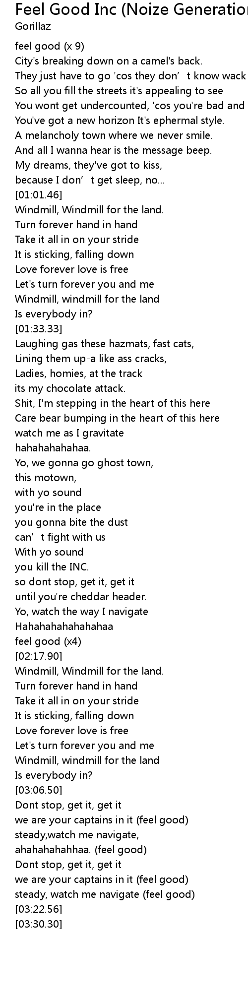 | [02:06.67] | feel good (x4) |