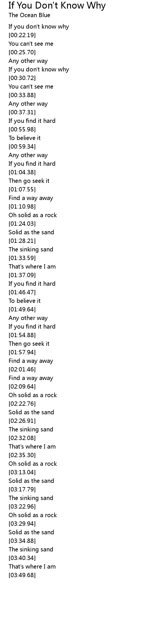 If You Don't Know Why Lyrics