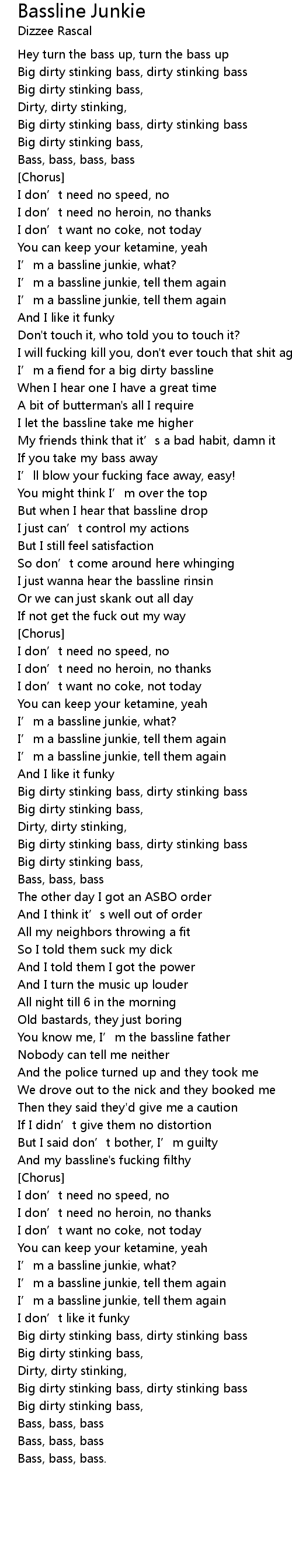 | And my bassline' s fucking filthy | |