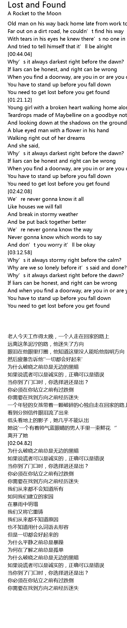| [00:44.26] | Why’s it always darkest right before the dawn? |