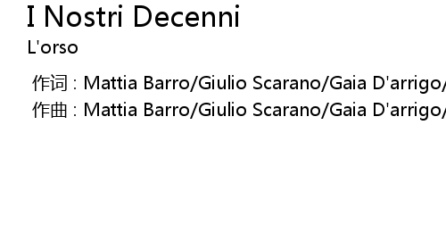 | [00:00.000] | 作词 : Mattia Barro/Giulio Scarano/Gaia D'arrigo/Tommaso Spinelli |