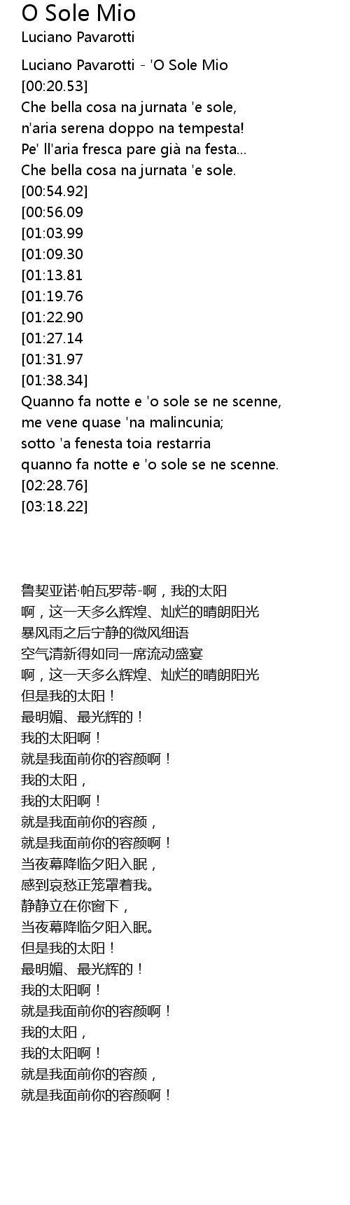 | [00:00.00] | Luciano Pavarotti - 'O Sole Mio |