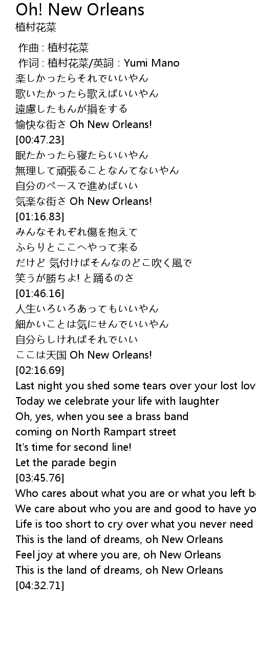 | [04:15.97] | Feel joy at where you are, oh New Orleans |