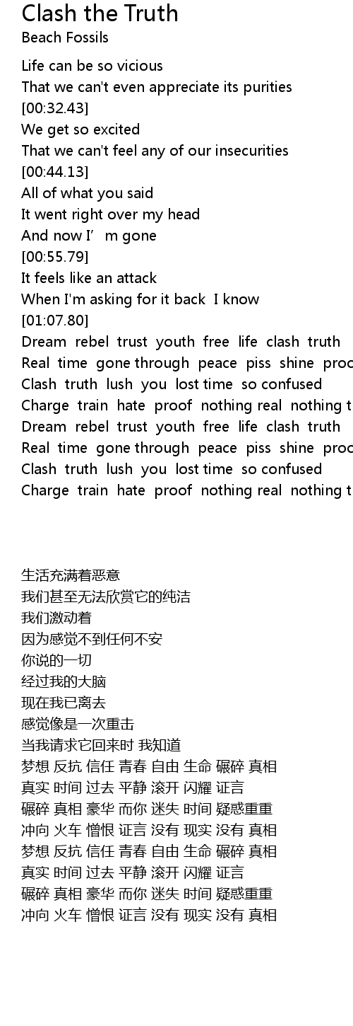 | [01:24.17] | Clash truth lush you lost time so confused |