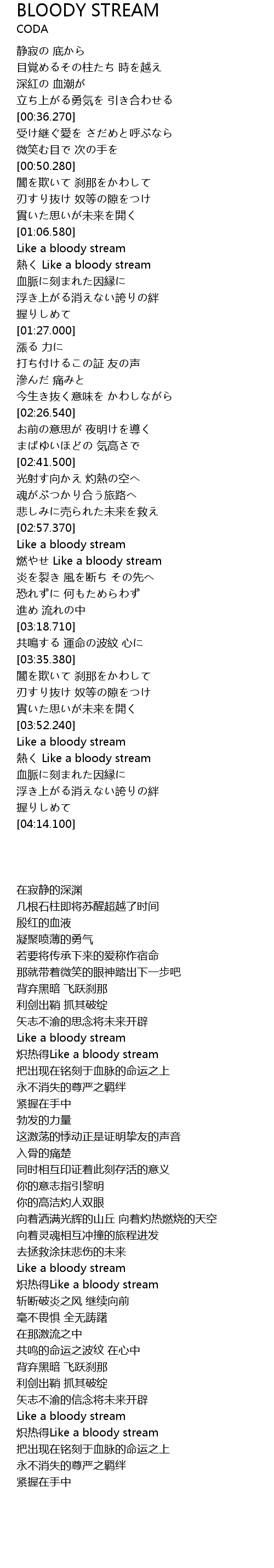 | [03:56.550] | 熱く Like a bloody stream |
