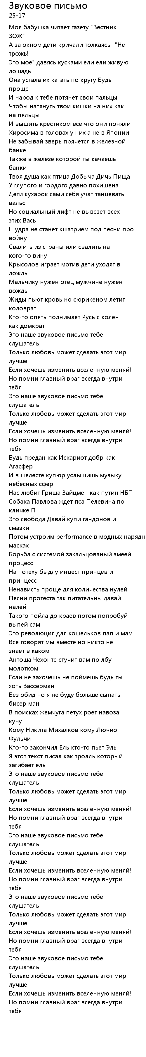 Это наше звуковое письмо тебе слушатель |