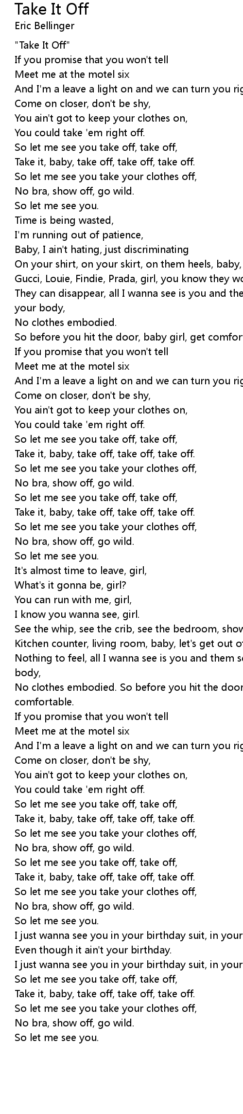 No clothes embodied. So before you hit the door, baby, girl, get comfortable. |