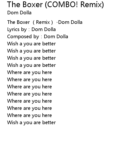 | [00:00.453] | The Boxer (Remix) -Dom Dolla |