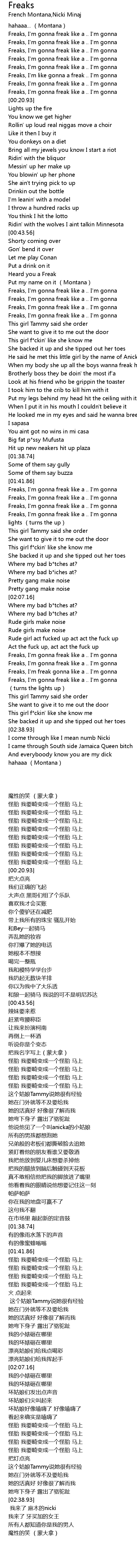 | [02:24.96] | Freaks, I'm freak gonna like a .. I'm gonna |