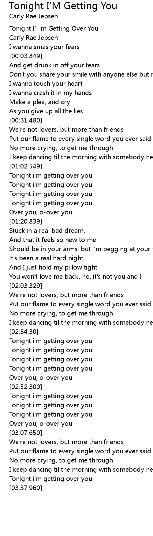 | [03:34.780] | Tonight i' m getting over you |