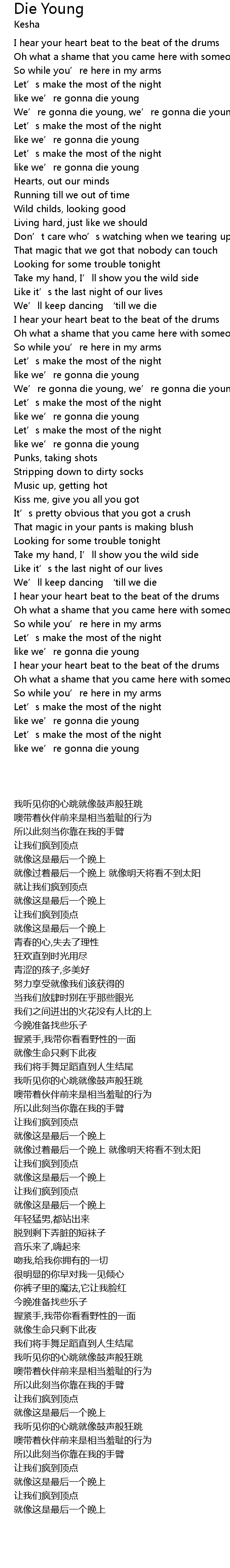 | [00:25.370] | We' re gonna die young, we' re gonna die young |