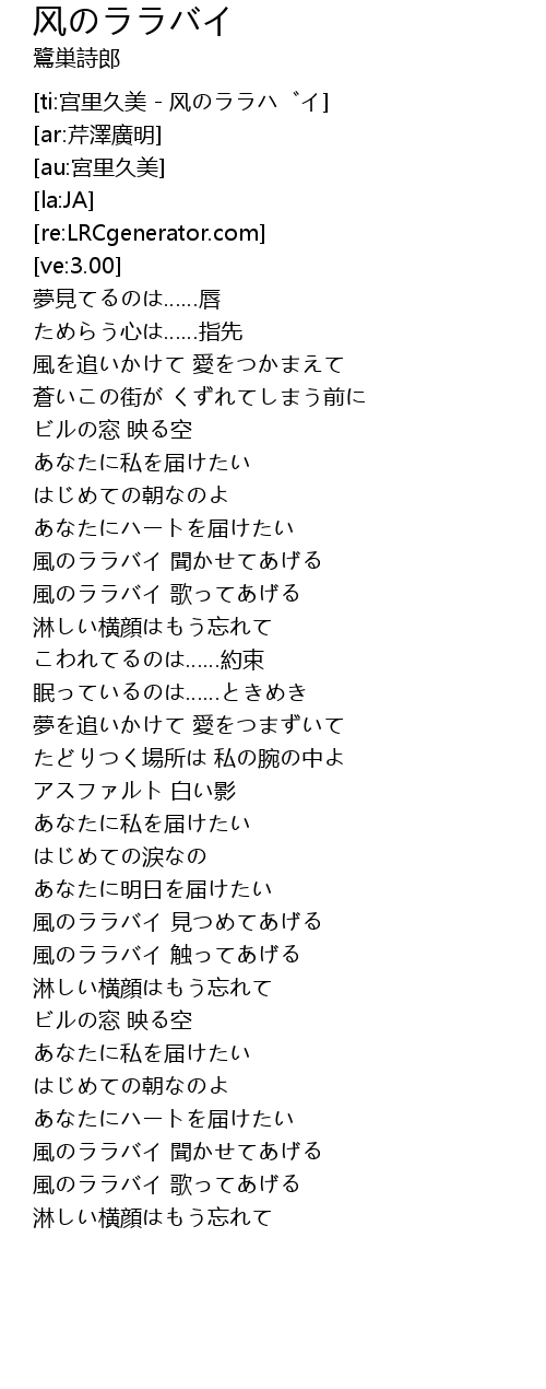 [ti:宫里久美 - 风のララバイ] |