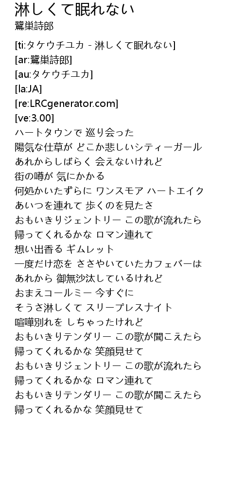 [ti:タケウチユカ - 淋しくて眠れない] |