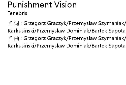 | [00:00.000] | 作曲 : Grzegorz Graczyk/Przemyslaw Szymaniak/Michał Karkusiński/Przemyslaw Dominiak/Bartek Sapota |