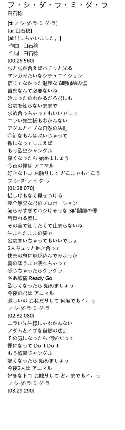 | [02:28.500] | フ·シ·ダ·ラ·ミ·ダ·ラ |