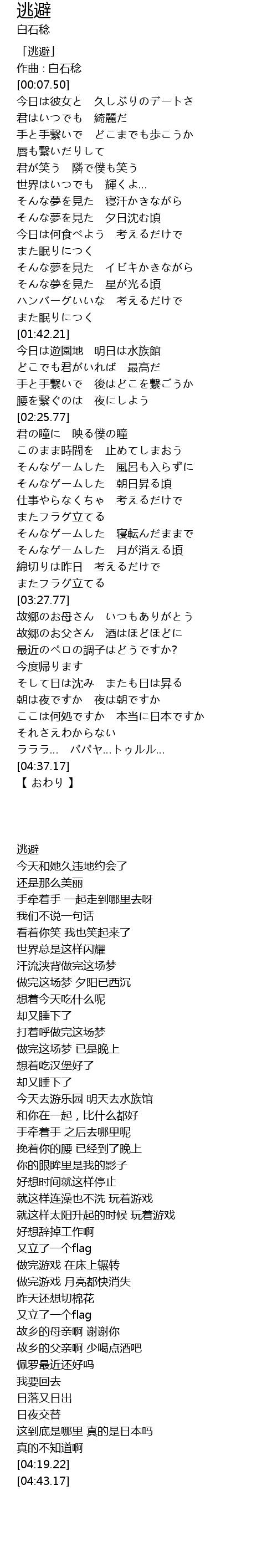 | [00:01.50] | 「逃避」 |