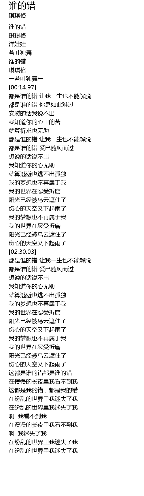 | [03:02.22] | 都是谁的错 爱已随风而过 |