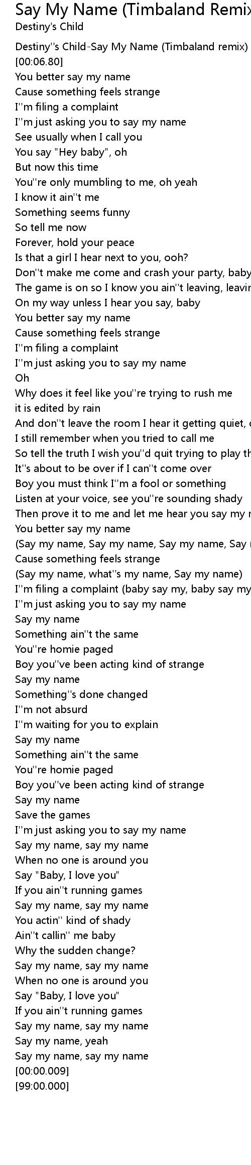 (Say my name, what''s my name, Say my name) |