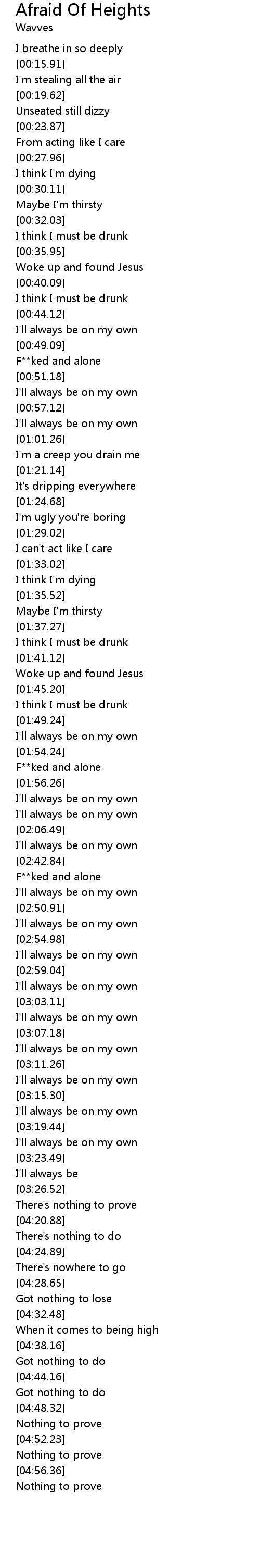 | [02:44.16] | F**ked and alone |