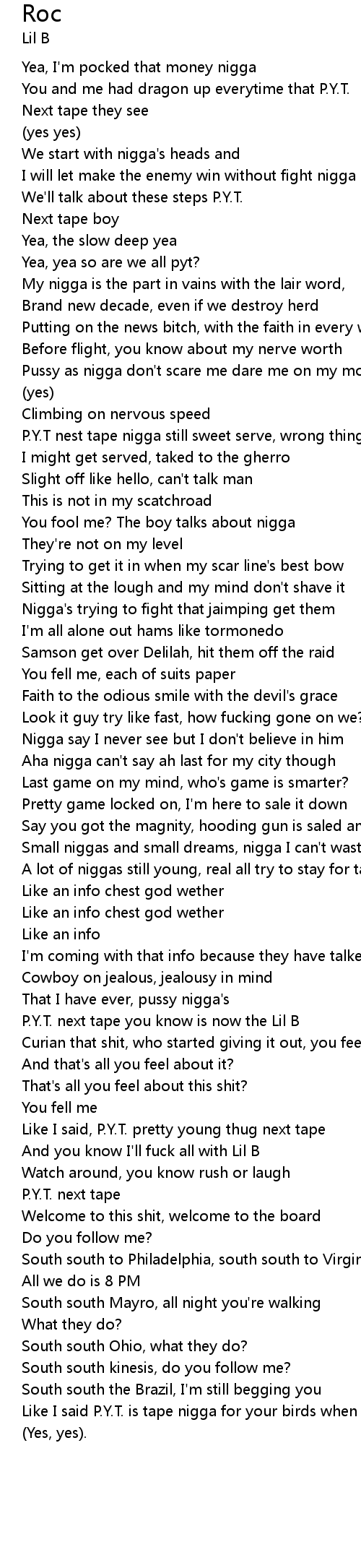 P.Y.T nest tape nigga still sweet serve, wrong thing ever |