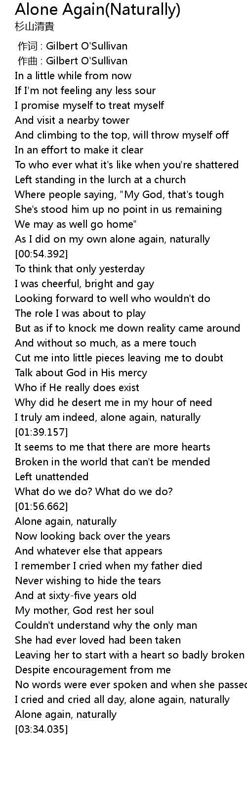 | [02:36.939] | Alone again, naturally |