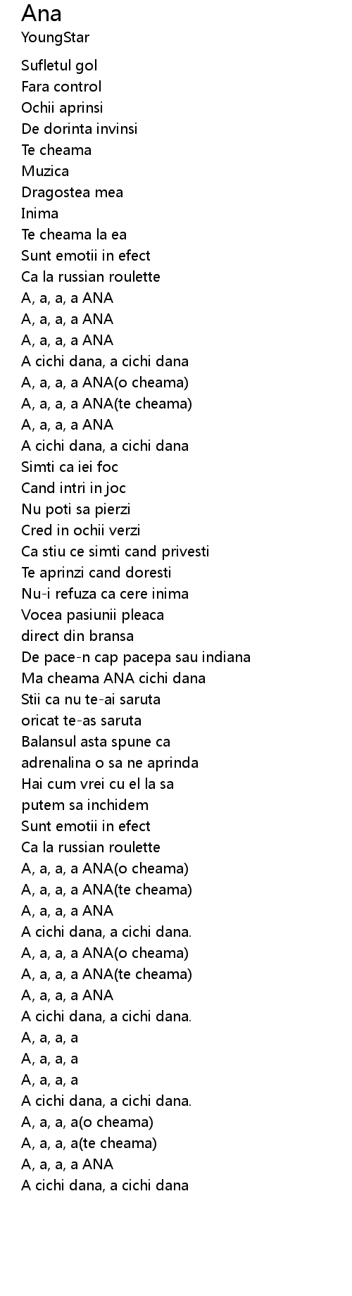 A, a, a, a ANA(te cheama) |