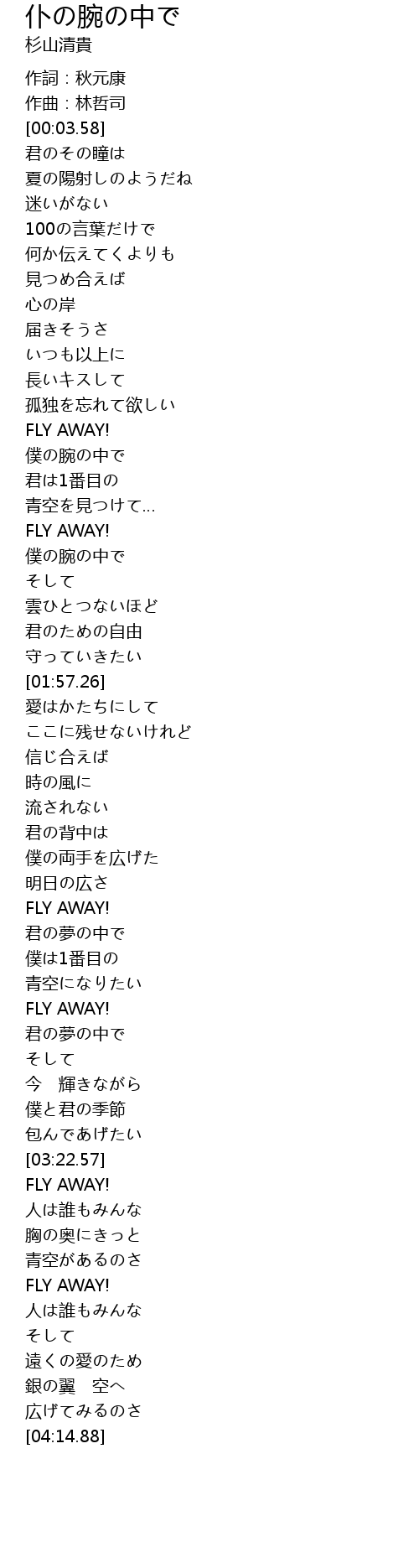 | [03:52.00] | FLY AWAY! |