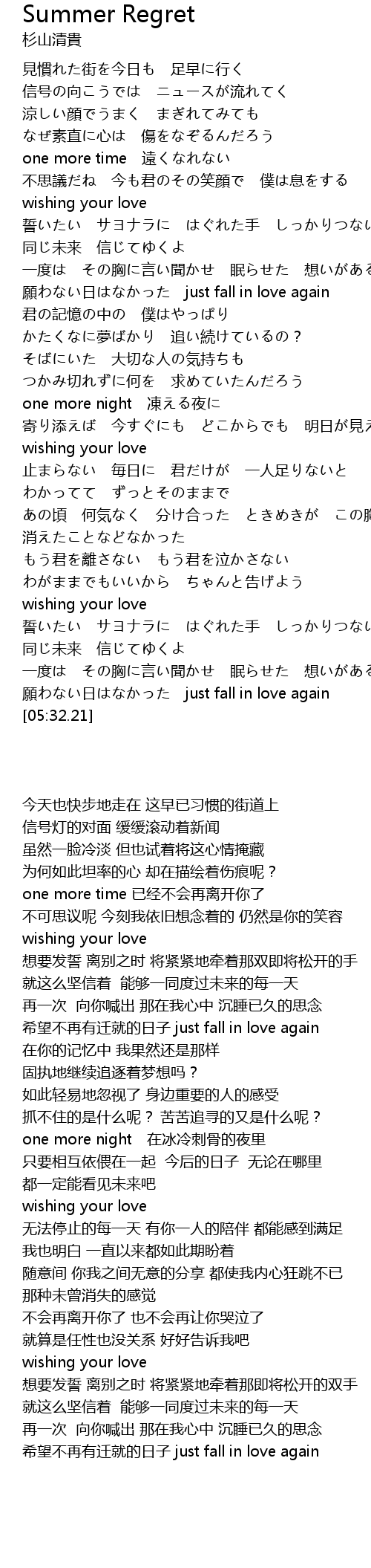 | [04:49.53] | 願わない日はなかった just fall in love again |