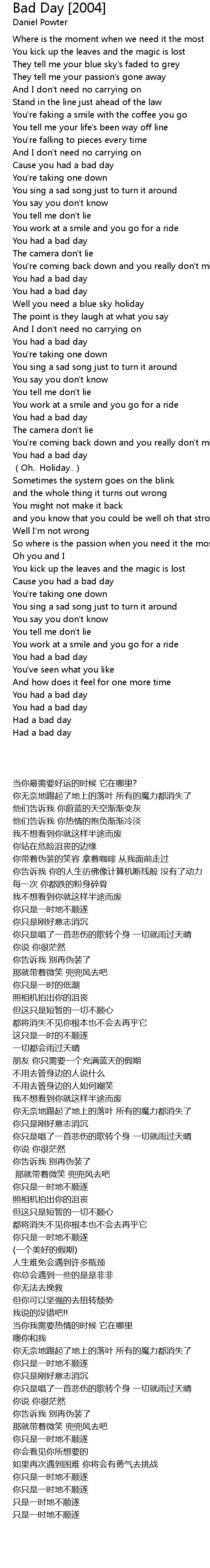 | [02:53.010] | Cause you had a bad day |