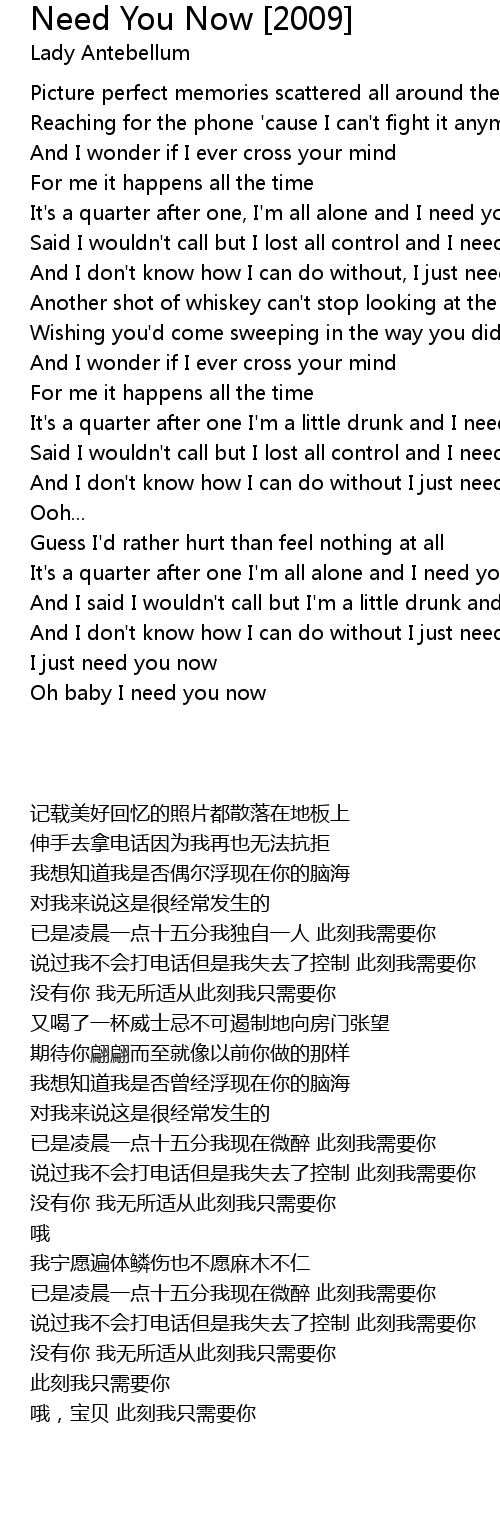 And I said I wouldn't call but I'm a little drunk and I need you now |