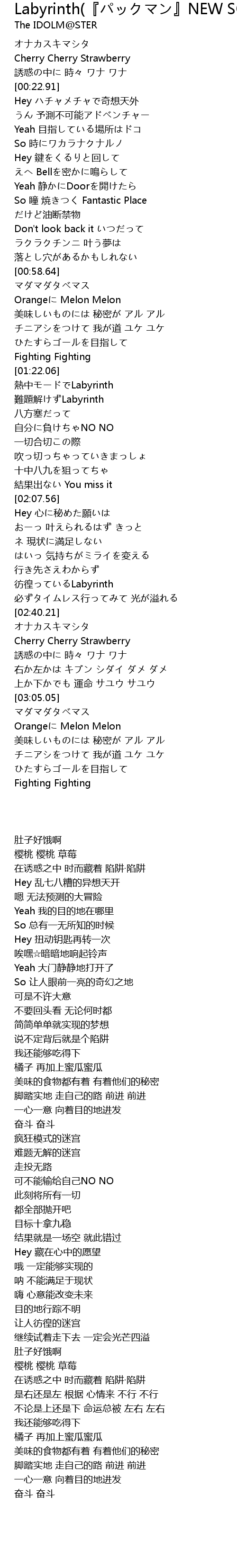 | Song | Labyrinth(『パックマン』NEW SONG) |