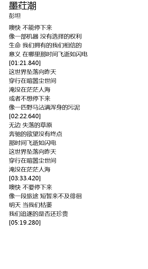 | [01:04.720] | 意义 在哪里那时间飞逝如闪电 |
