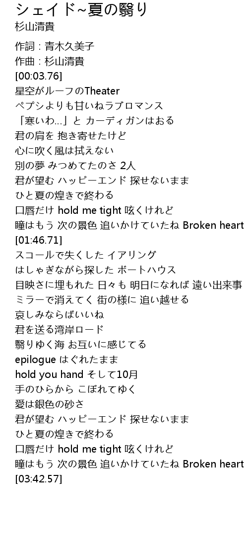 | [00:02.10] | 作曲:杉山清貴 |