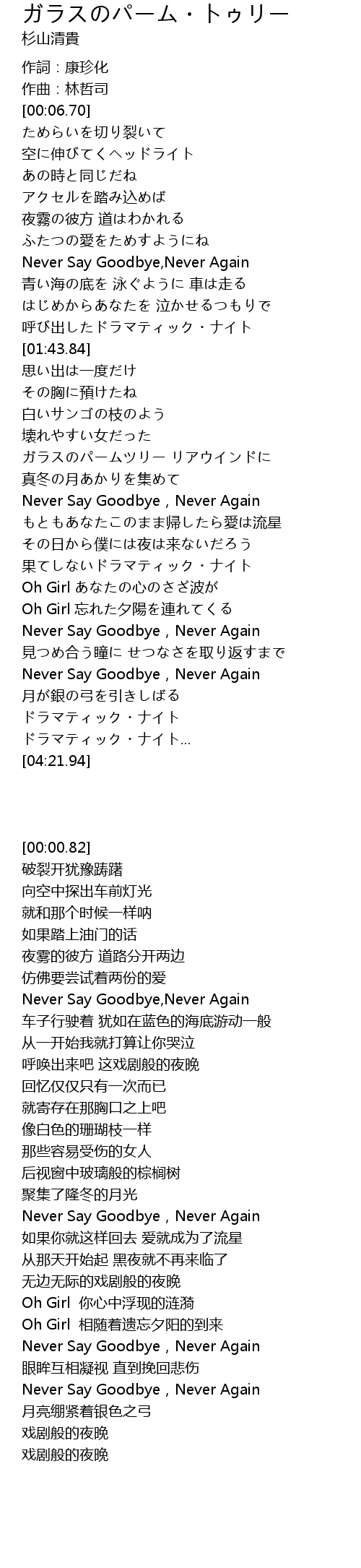 | [02:32.79] | Never Say Goodbye, Never Again |