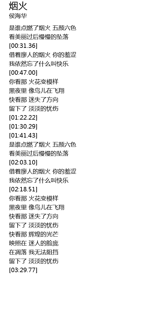 | [00:18.35] | 是谁点燃了烟火 五颜六色 |