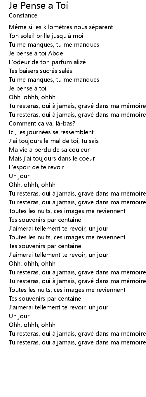 | Song | Je Pense a Toi |