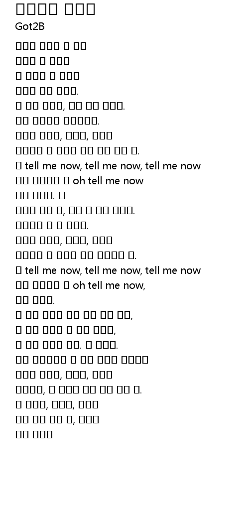 | [01:54.734] | 넌 tell me now, tell me now, tell me now |