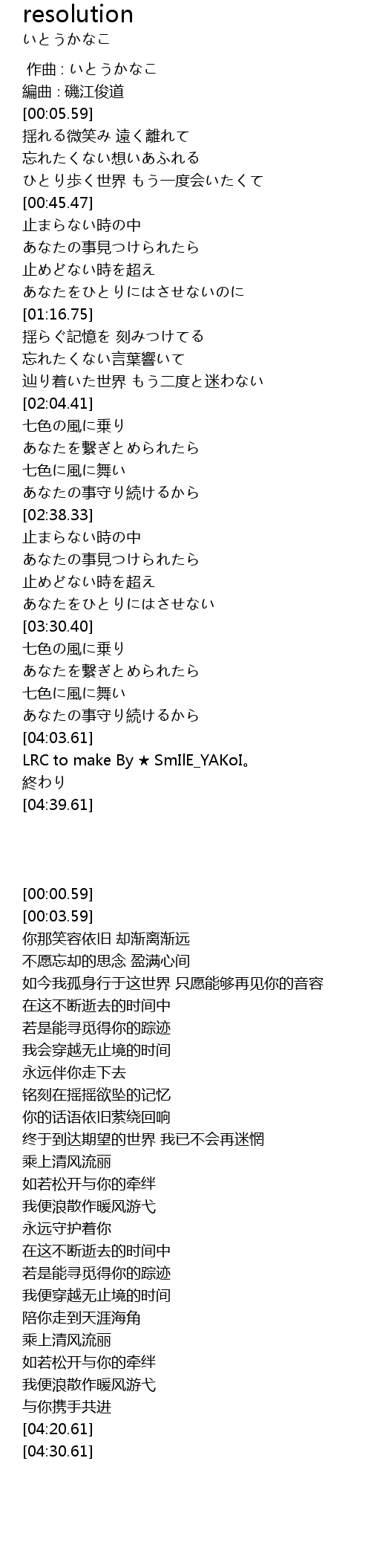| [04:20.61] | LRC to make By SmIlE_YAKoI. |