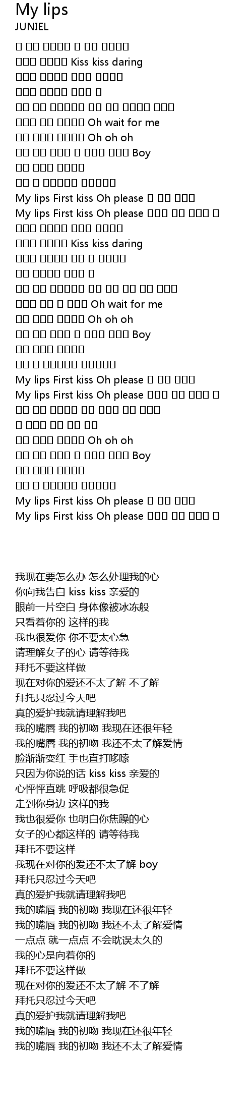 | [01:54.12] | My lips First kiss Oh please 난 아직 어려요 |